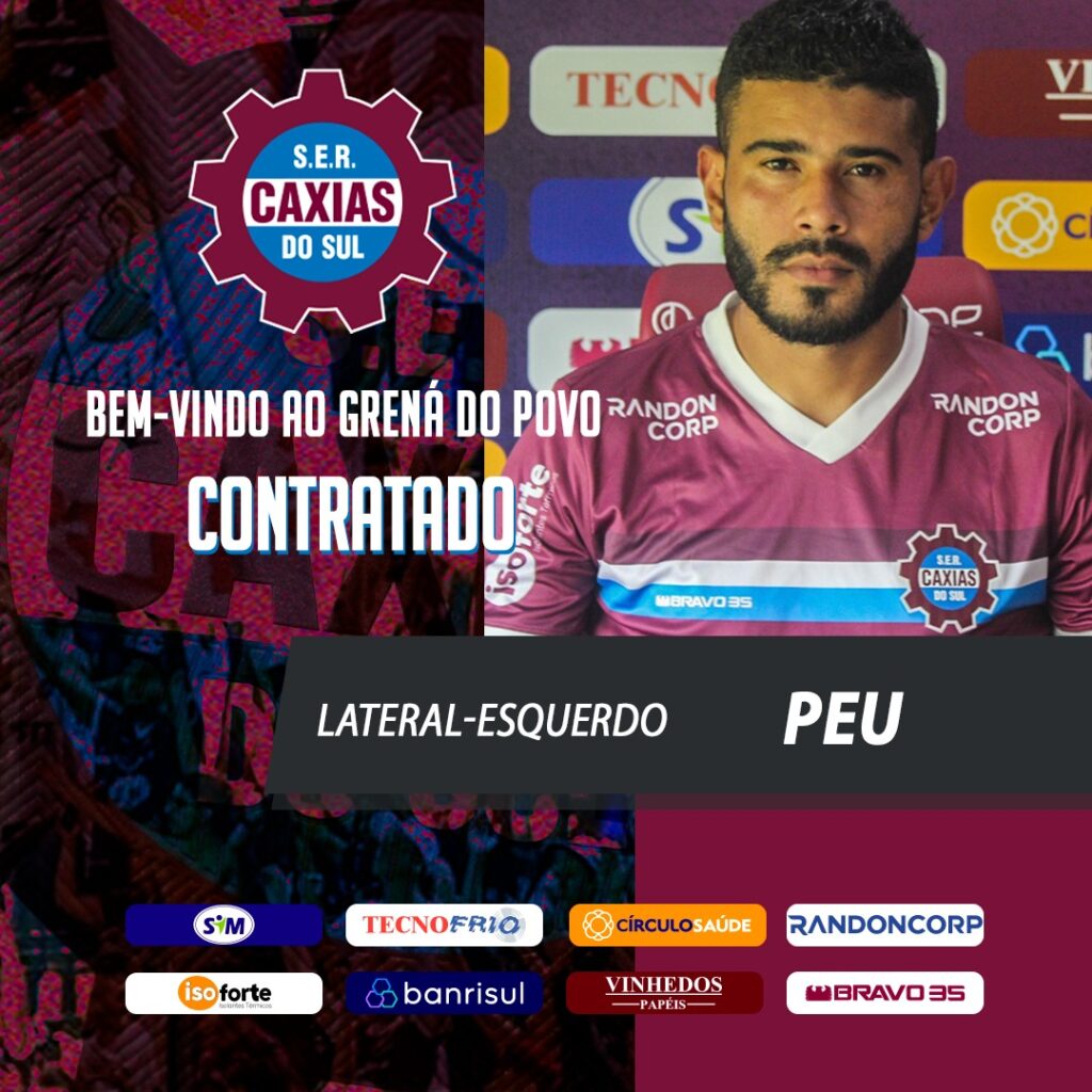 No final da tarde da segunda-feira (10), o Caxias oficializou a contratação de mais um reforço para a disputa da Série D. Trata-se de Peu, novo lateral-esquerdo da equipe que já chegou à Caxias do Sul para ser apresentado oficialmente.