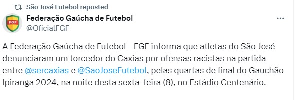 O Caxias e a Federação Gaúcha de Futebol falaram sobre o ocorrido e repudiaram o caso.