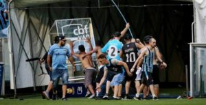 Torcedores do Grêmio depredam cabine do VAR após mais uma derrota. Foto: Reprodução.