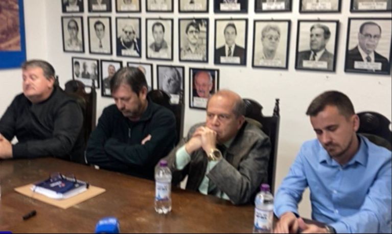 Juntamente com Sandro Borowski (de preto e braços cruzados), vice-presidente também deixarão seus cargos ao final da participação do clube na Série D. Foto: Nícolas Wagner/Rádio Índio Capilé