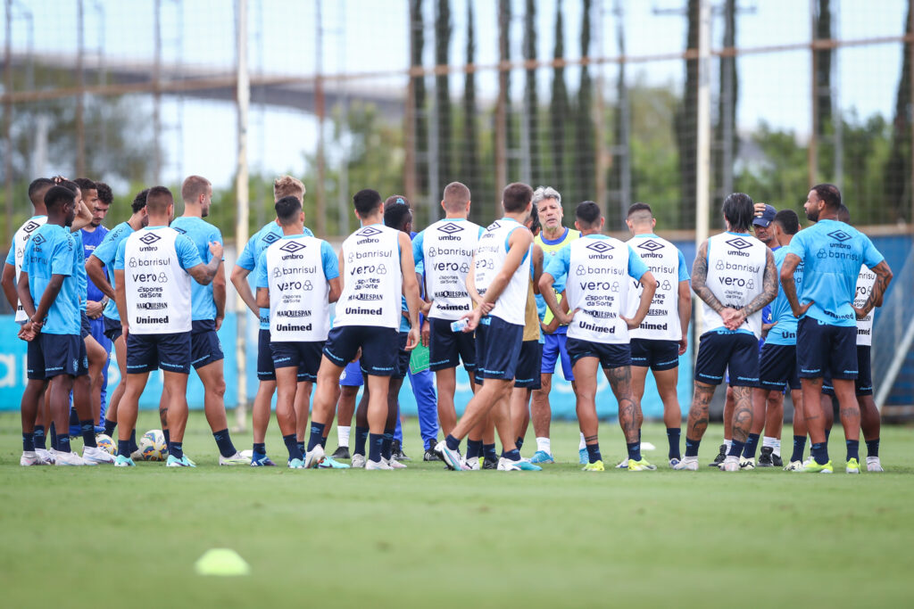 A movimentação de hoje iniciou com o aquecimento e um treinamento físico comandado pelo preparador Mario Pereira e sua equipe. Durante 30 minutos, os jogadores passaram por um circuito de exercícios de peso, força e arranque. Na sequência, Renato Portaluppi reuniu os atletas no centro do gramado para orientar o trabalho técnico.
