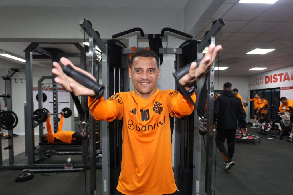 Mesmo com a chuva que atinge Porto Alegre, o grupo colorado deu sequência nos trabalhos para enfrentar o Palmeiras pelo Campeonato Brasileiro. Na manhã desta quarta-feira (12), os jogadores realizaram atividades na parte interna do CT Parque Gigante. A comissão técnica orientou um circuito físico na academia, com exercícios de força e resistência, além de corridas na esteira.
