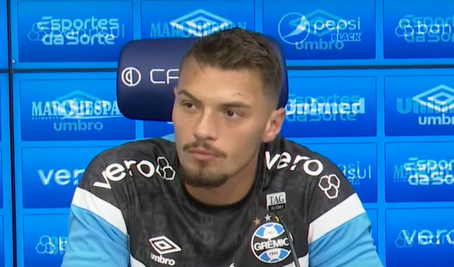 Goleiro concedeu entrevista coletiva nesta quarta-feira (24). Foto: Reprodução/Grêmio TV