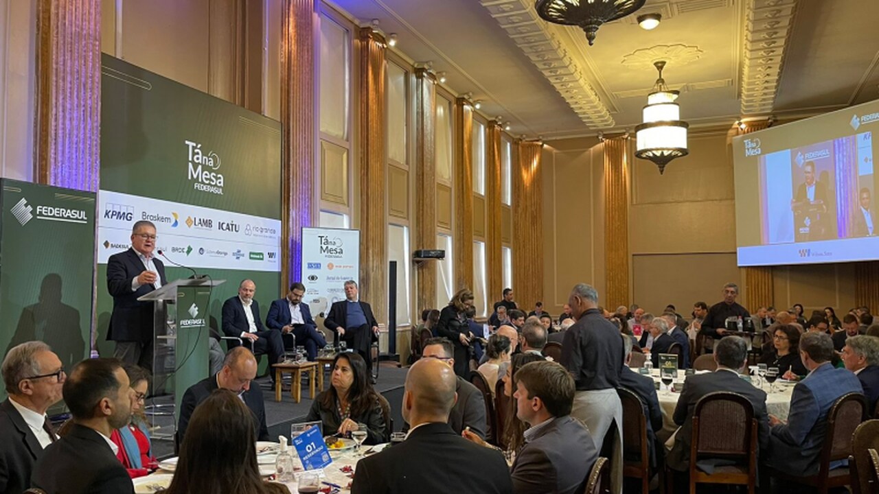 O Tá na Mesa contou também com a participação do presidente do Banrisul, Fernando Lemos, e do diretor-presidente do Badesul, Claudio Gastal. O painel foi coordenador pelo presidente da Federasul, Rodrigo Sousa Costa.