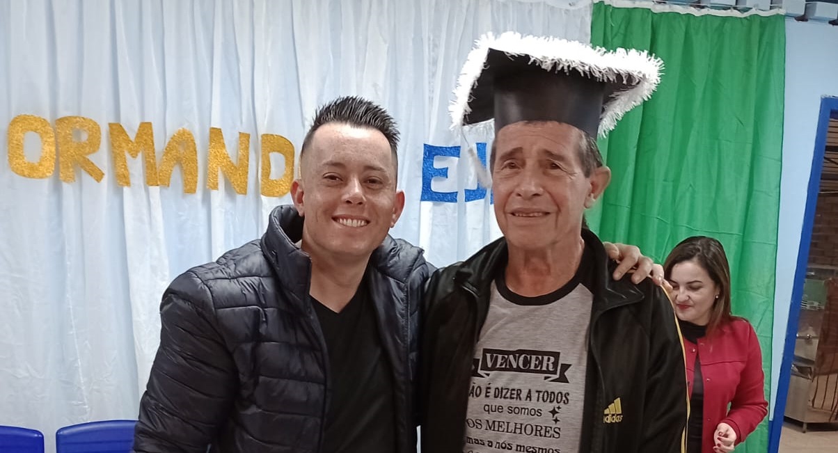 A formatura de seu Cláudio e seus 19 colegas aconteceu no último fim de semana na Escola Municipal de Ensino Fundamental Vânius Abílio dos Santos. Com determinação e esforço, ele concluiu o ensino fundamental e já está matriculado no ensino médio, provando que nunca é tarde para buscar conhecimento.