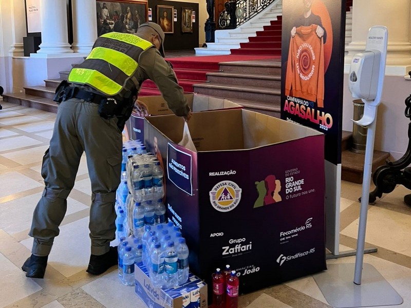 A Brigada Militar participa da campanha de arrecadação de donativos encabeçada pelo Governo do Estado para as vítimas das enchentes que atingiram o Rio Grande do Sul nesta semana. As doações podem ser realizadas nos quartéis da Corporação distribuídos em todo o estado. As pessoas atingidas pelas inundações precisam de água potável, alimentos/cestas básicas, agasalhos, roupas, roupas de cama e produtos de higiene e limpeza.