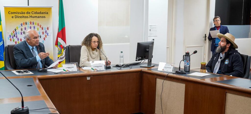 No período dos Assuntos Gerais da reunião da Comissão de Cidadania e Direitos Humanos, a deputada Laura Sito (PT) relatou a violência que sofreu da Guarda Municipal de Porto Alegre durante a Ocupação ReXistência. Também foi feita a escuta de uma vítima de violência da Brigada Militar. O encontro aconteceu na manhã desta quarta-feira (27) e foi comandado pelo deputado Airton Lima (Podemos).